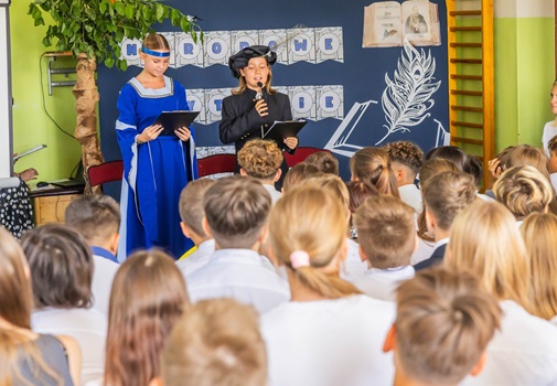 5 września czytaliśmy 📜 poezje Jana Kochanowskiego, ojca ✒️ literatury polskiej. Nastrojowa muzyka i taniec renesansowy wprowadziły zgromadzonych gości, pana dyrektora, nauczycieli i uczniów w epokę Jana z Czarnolasu. Czytaliśmy fraszki, pieśni i treny wielkiego poety.